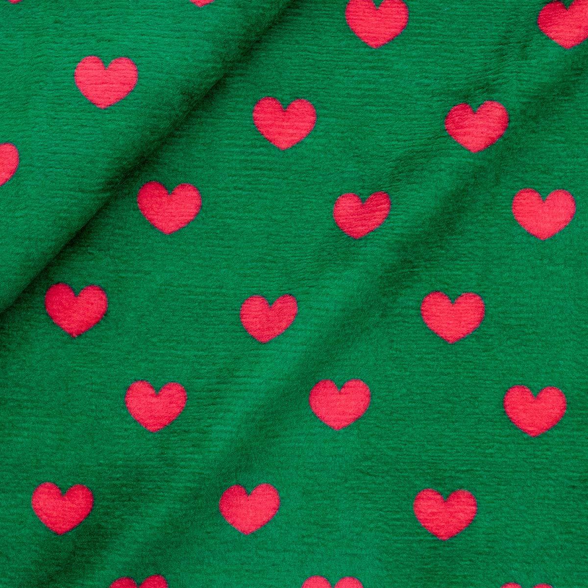 Мех коротковорсовый 1,5мм с принтом сердечки, 47*47см (±2см), 100% п/э (зеленый/красный) 29492