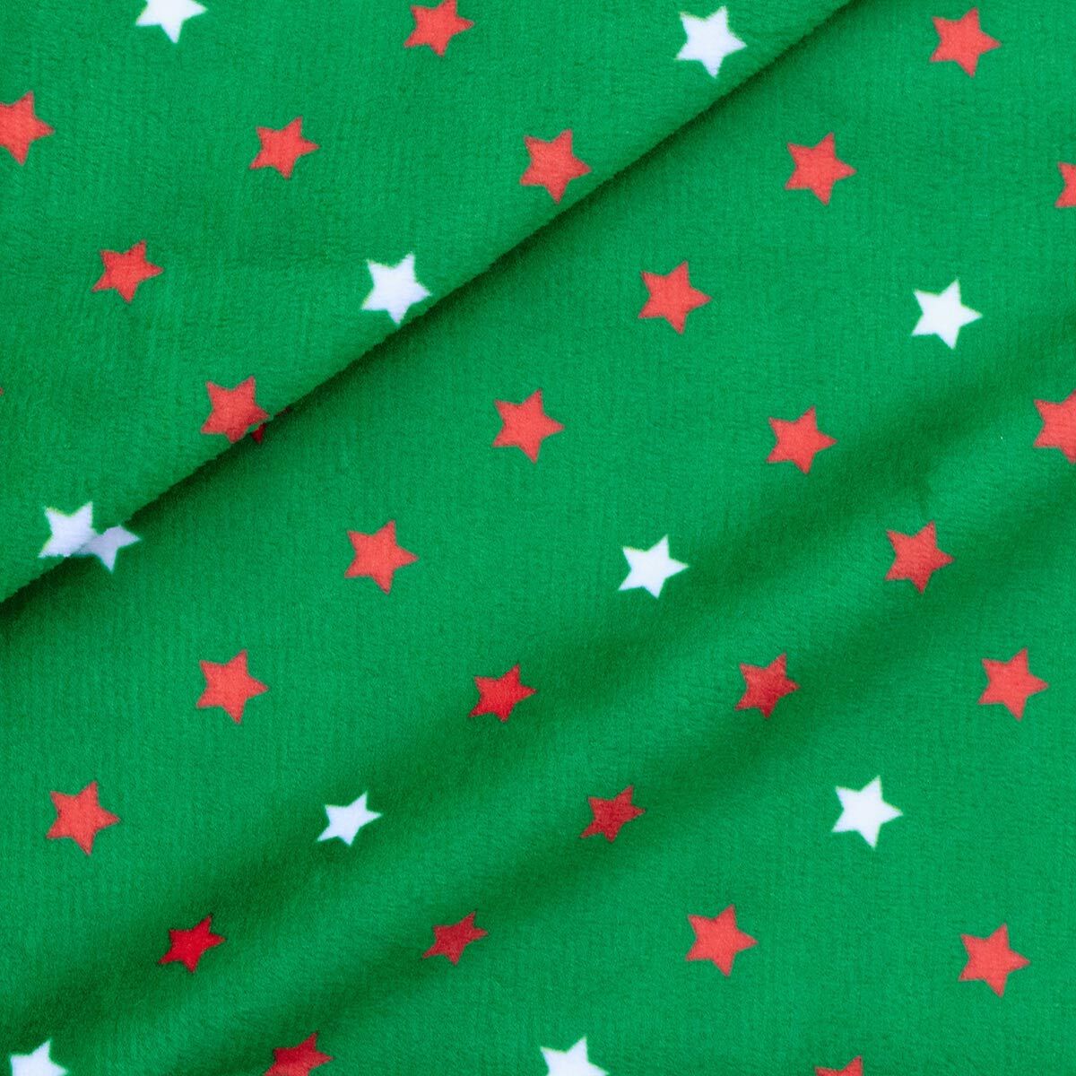 Мех коротковорсовый 1,5мм с принтом звезды, 47*47см (±2см), 100% п/э (зеленый/красный/белый) 29493
