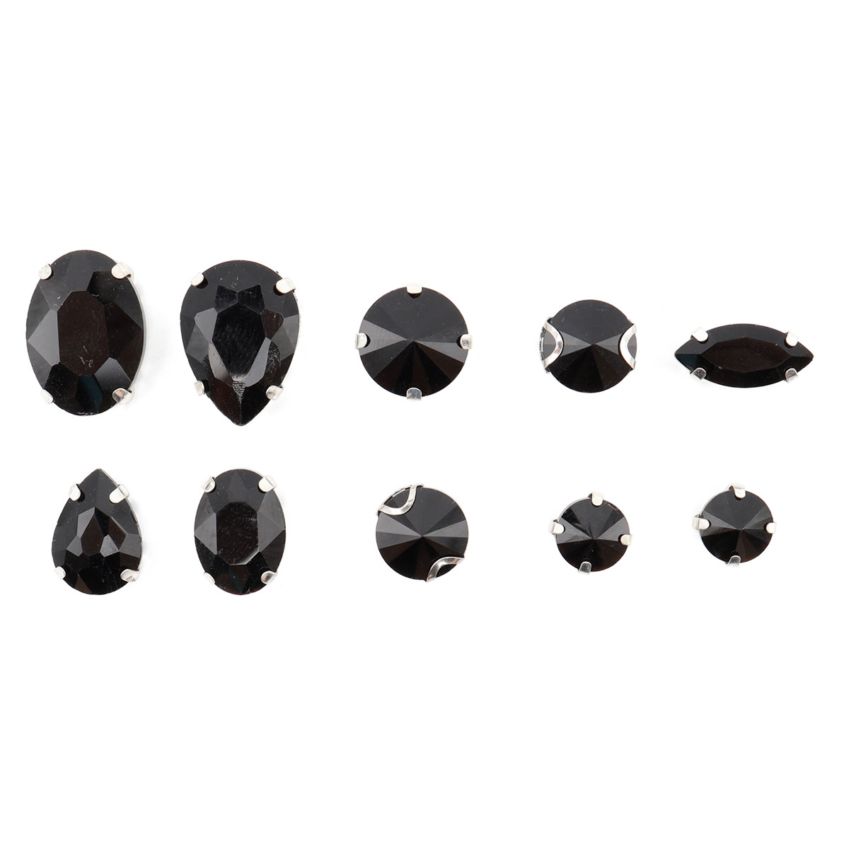Стразы хрусталь в металлических цапах, форма страз: микс, черный, 10 шт, МФ-12