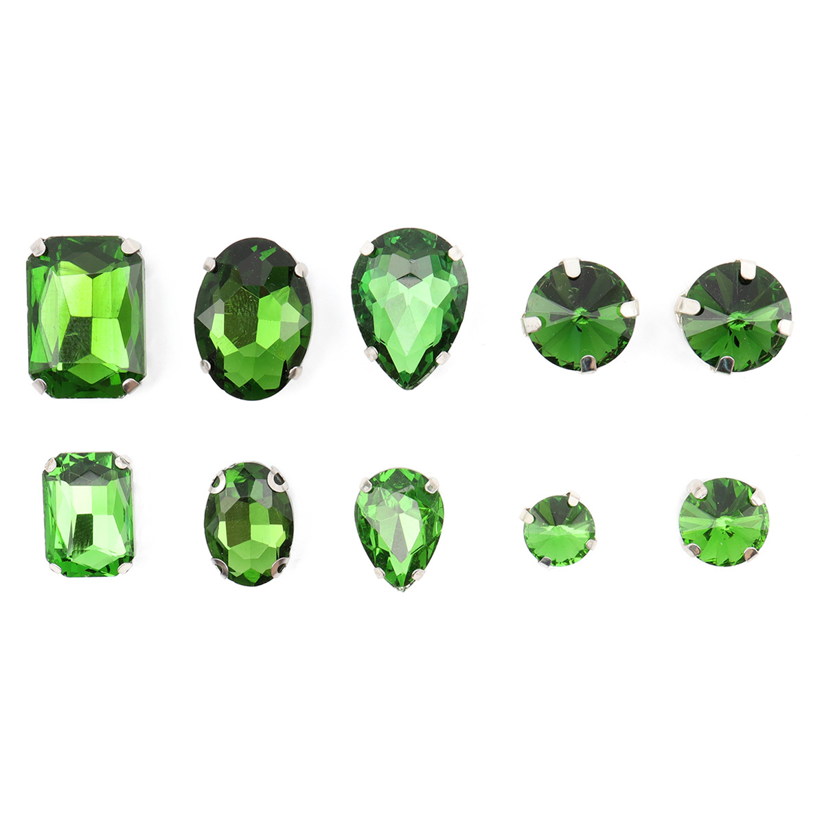 Стразы хрусталь в металлических цапах, форма страз: микс, зеленый, 10 шт, МФ-8