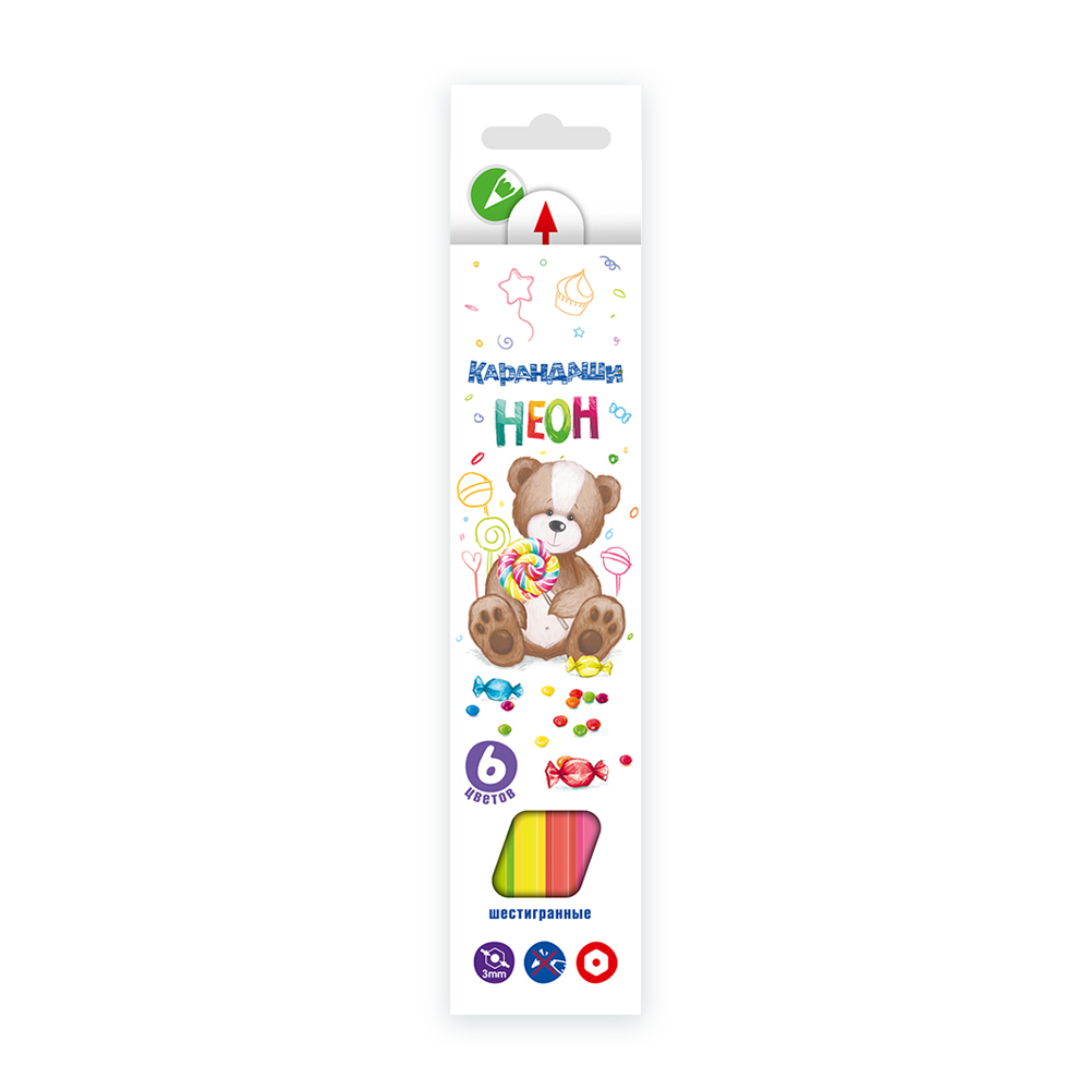 Набор неоновых карандашей NCP-9006 заточенный 8х6 цв, Мишка NCP-9006
