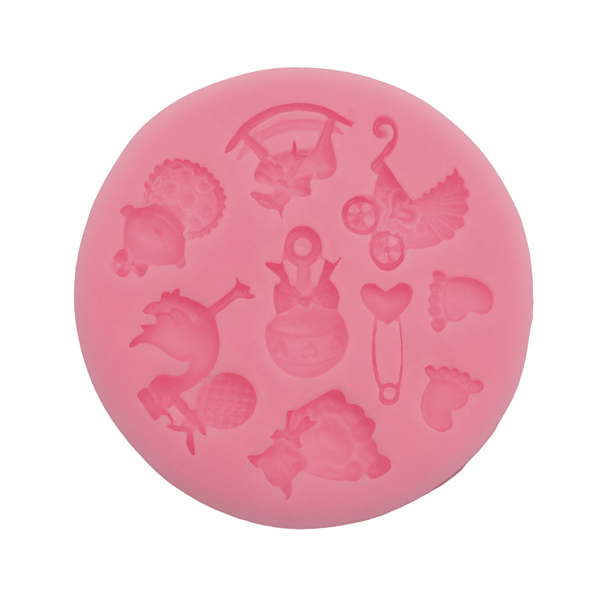 Силиконовый молд позволяет формировать объемные или рельефные фигурки с тончайшей проработкой деталей. Предназначен для многократного использования. Особенности: – Молды из силикона подходят для работы с мастикой, марципаном и другими съедобными составами, а также полимерной глиной, гипсом, воском, смолой, мыльной основой. – Гибкие, при этом сохраняют форму, долговечны. – Готовое изделие легко вынуть, достаточно отогнуть стенки молда. – Силикон не впитывает запахи, форму из этого материала легко отмыть. – Подходят для запекания и мыловарения. Выдерживают температуру от –40 до +230 градусов Цельсия. Рекомендации: форму необходимо заполнять небольшими порциями полимерной глины и другого материала. Каждую порцию следует утрамбовывать в углубления молда с помощью стека или палочки. Размер: 7,5 см.