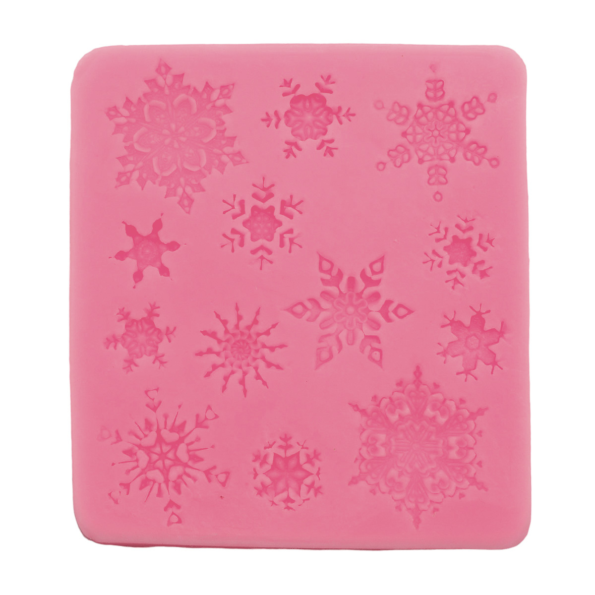 Силиконовый молд позволяет формировать объемные или рельефные фигурки с тончайшей проработкой деталей. Предназначен для многократного использования. Особенности: – Молды из силикона подходят для работы с мастикой, марципаном и другими съедобными составами, а также полимерной глиной, гипсом, воском, смолой, мыльной основой. – Гибкие, при этом сохраняют форму, долговечны. – Готовое изделие легко вынуть, достаточно отогнуть стенки молда. – Силикон не впитывает запахи, форму из этого материала легко отмыть. – Подходят для запекания и мыловарения. Выдерживают температуру от –40 до +230 градусов Цельсия. Рекомендации: форму необходимо заполнять небольшими порциями полимерной глины и другого материала. Каждую порцию следует утрамбовывать в углубления молда с помощью стека или палочки. Размеры: большие снежинки 3 см; средние снежинки 2,2 см, 2,3 см, 2,5 см; маленькие снежинки 1,3 см, 1,4 см, 1,5 см, 1,7 см, 1,8 см, 1,9 см.