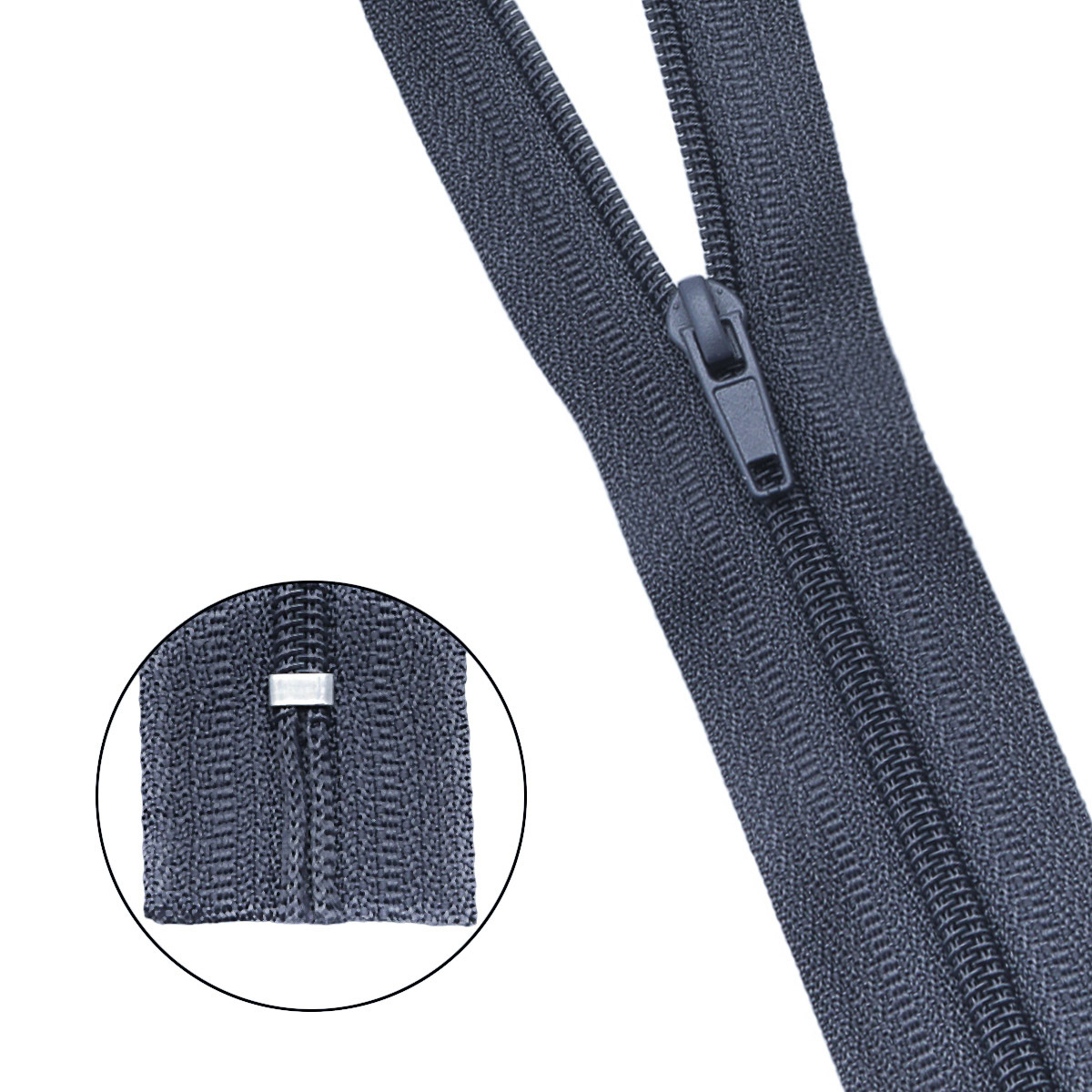 Молния спираль (витая) брючная Т4 (4 мм) 1 зам., н/раз., 20 см, автомат, цв.301 т.серый, 10 шт