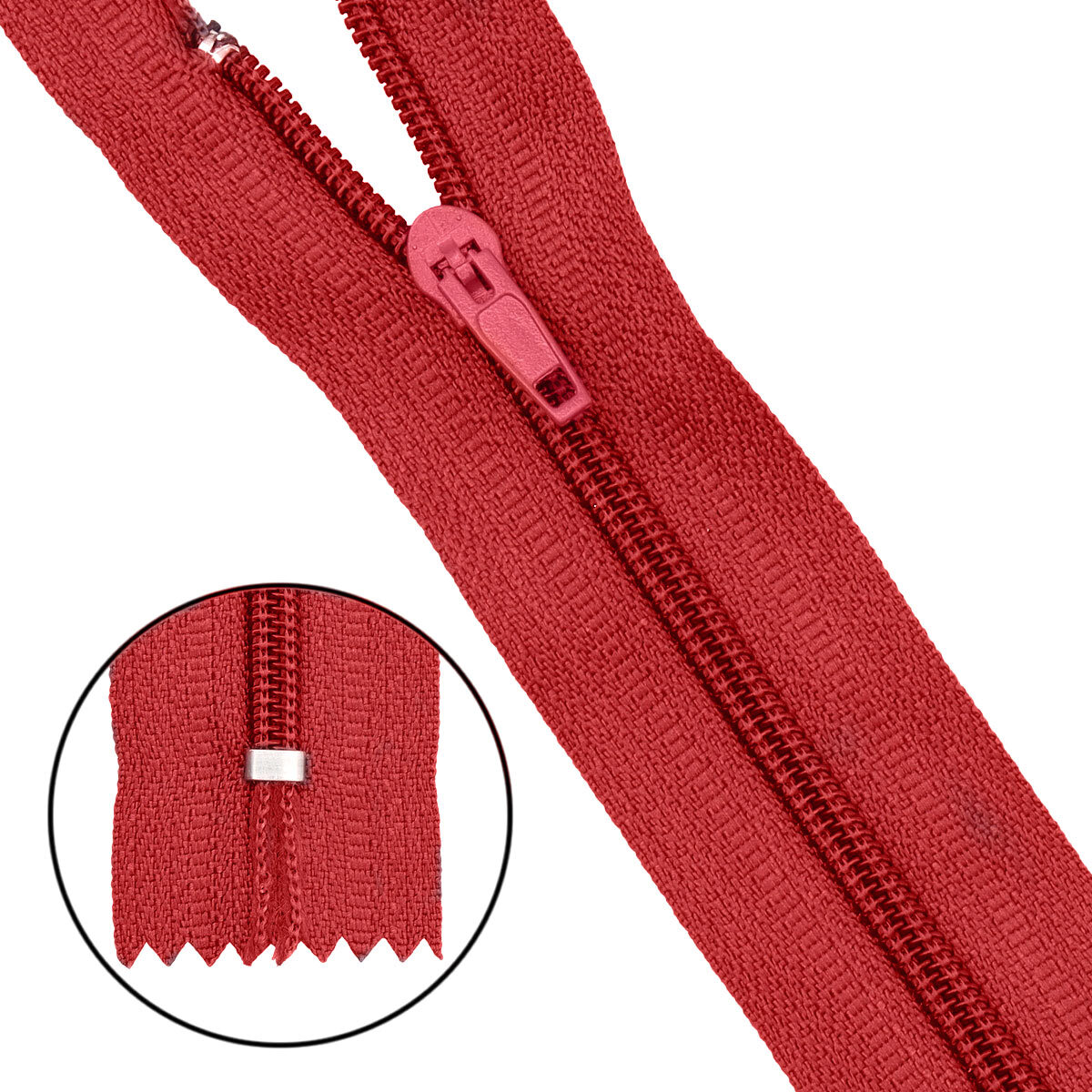 Молния спираль (витая) брючная Т4 (4 мм) 1 зам., н/раз., 18 см, п/автомат, цв.519 красный, 148, 10 шт