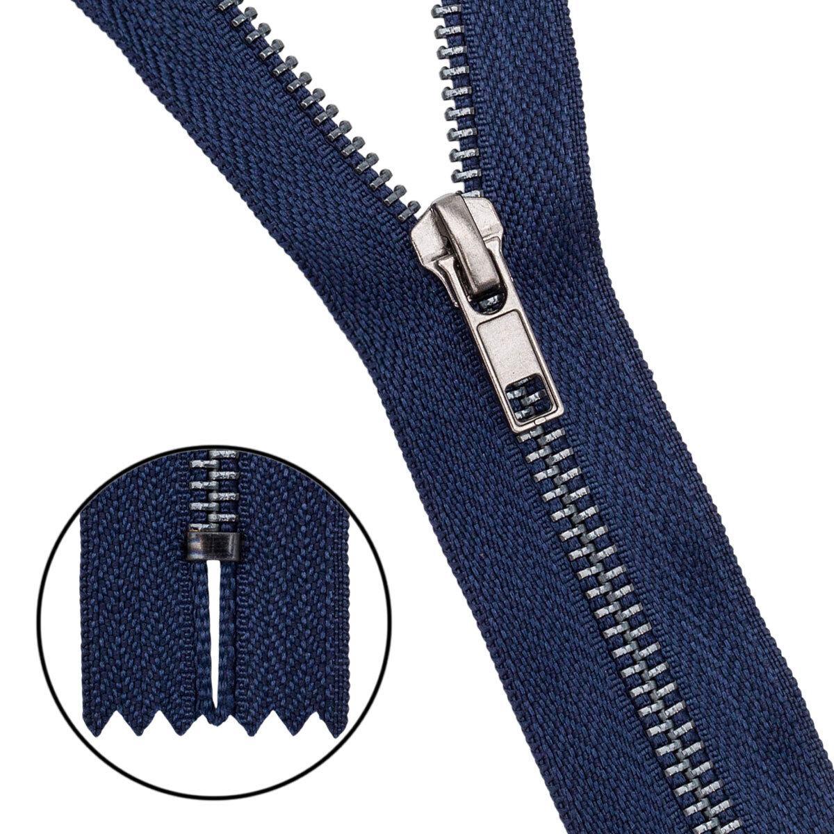 Молния металл джинсовая Т5 (5 мм) 1 зам., н/раз., оксид 18 см, А330 т.синий, 10 шт
