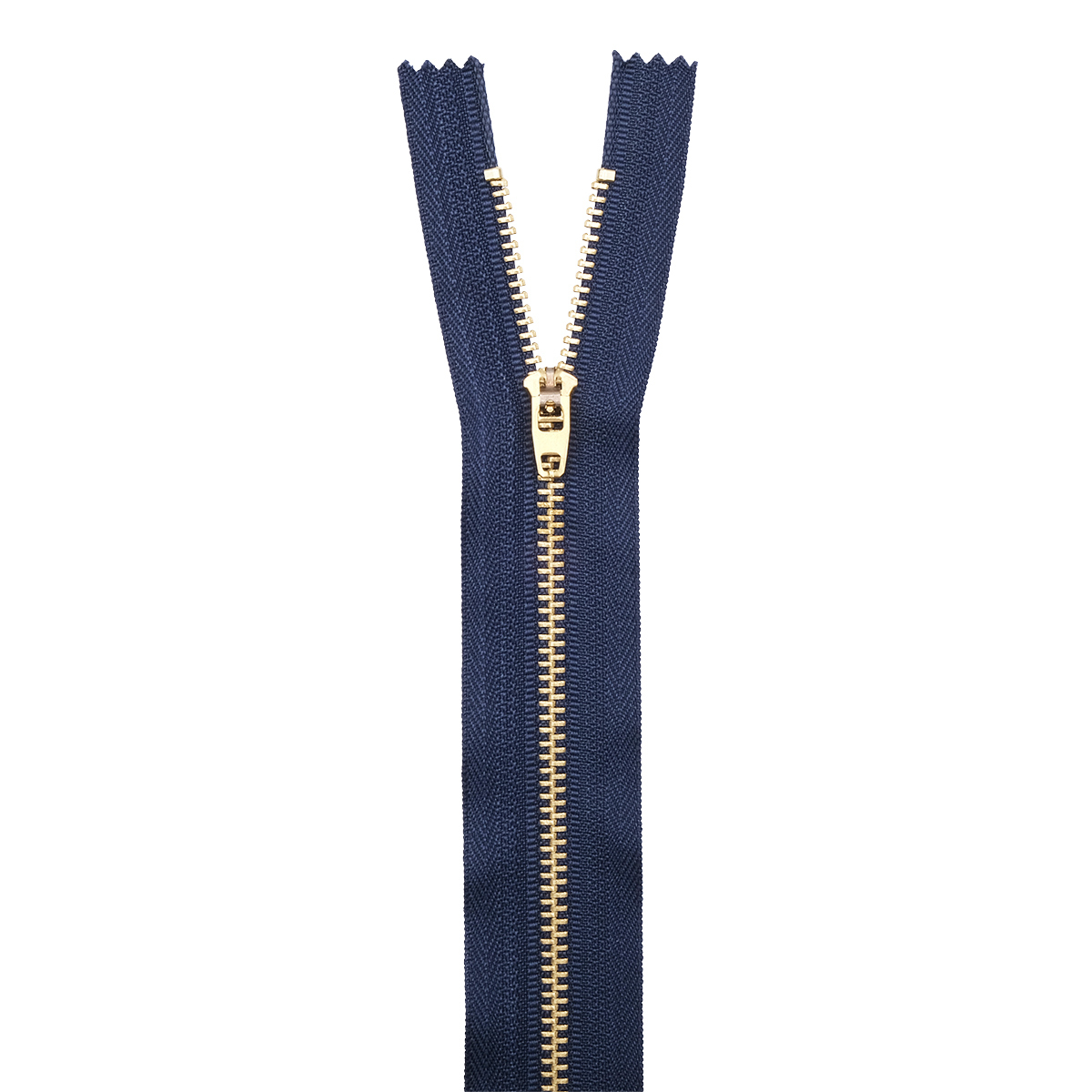 Молния металл джинсовая Т4 (4 мм) 1 зам., н/раз., 18 см, золото, F330 т.синий, уп. 10 шт