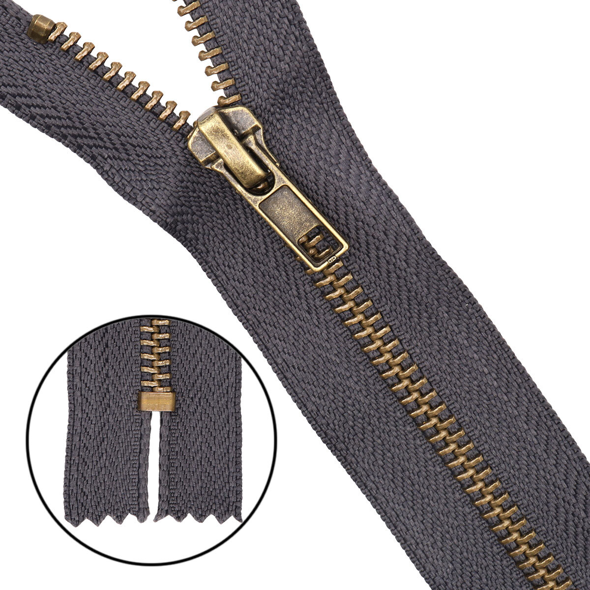 Молния металл джинсовая Т5 (5 мм) 1 зам., н/раз., антик, 20 см, 301 т.серый, 10 шт