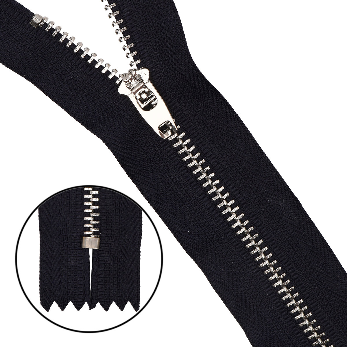 Молния металл джинсовая Т4 (4 мм) 1 зам., н/раз., 18 см, никель, 233 т.синий, 10 шт