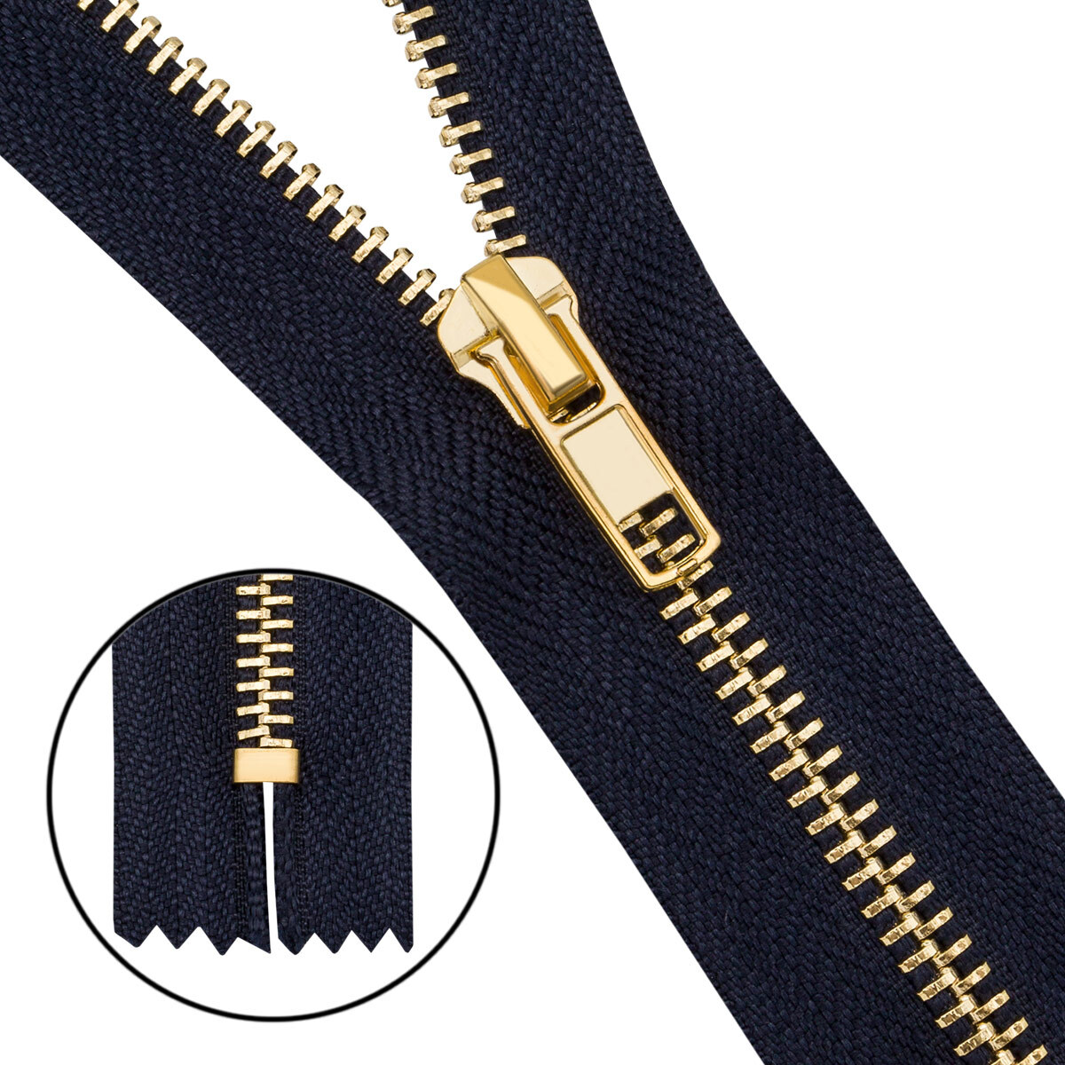 Молния металл джинсовая Т5 (5 мм) 1 зам., н/раз., 16 см, золото, 233 синий, 6534-0233, 10 шт