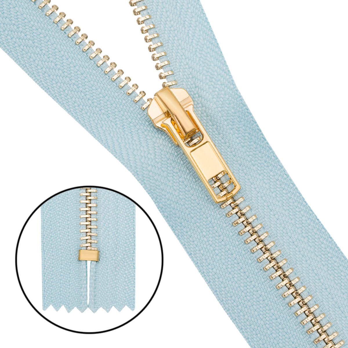 Молния металл джинсовая Т5 (5 мм) 1 зам., н/раз., 18 см, золото, 542 голубой, 6534-0234, 10 шт