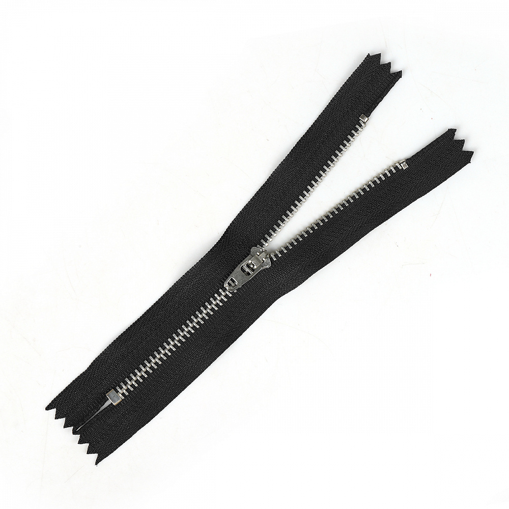 Молния металл джинсовая Т4 (4 мм), 1 зам., н/раз., 14 см, никель, замок М-4002 цв.F322 черный уп.50 шт, Mzipp