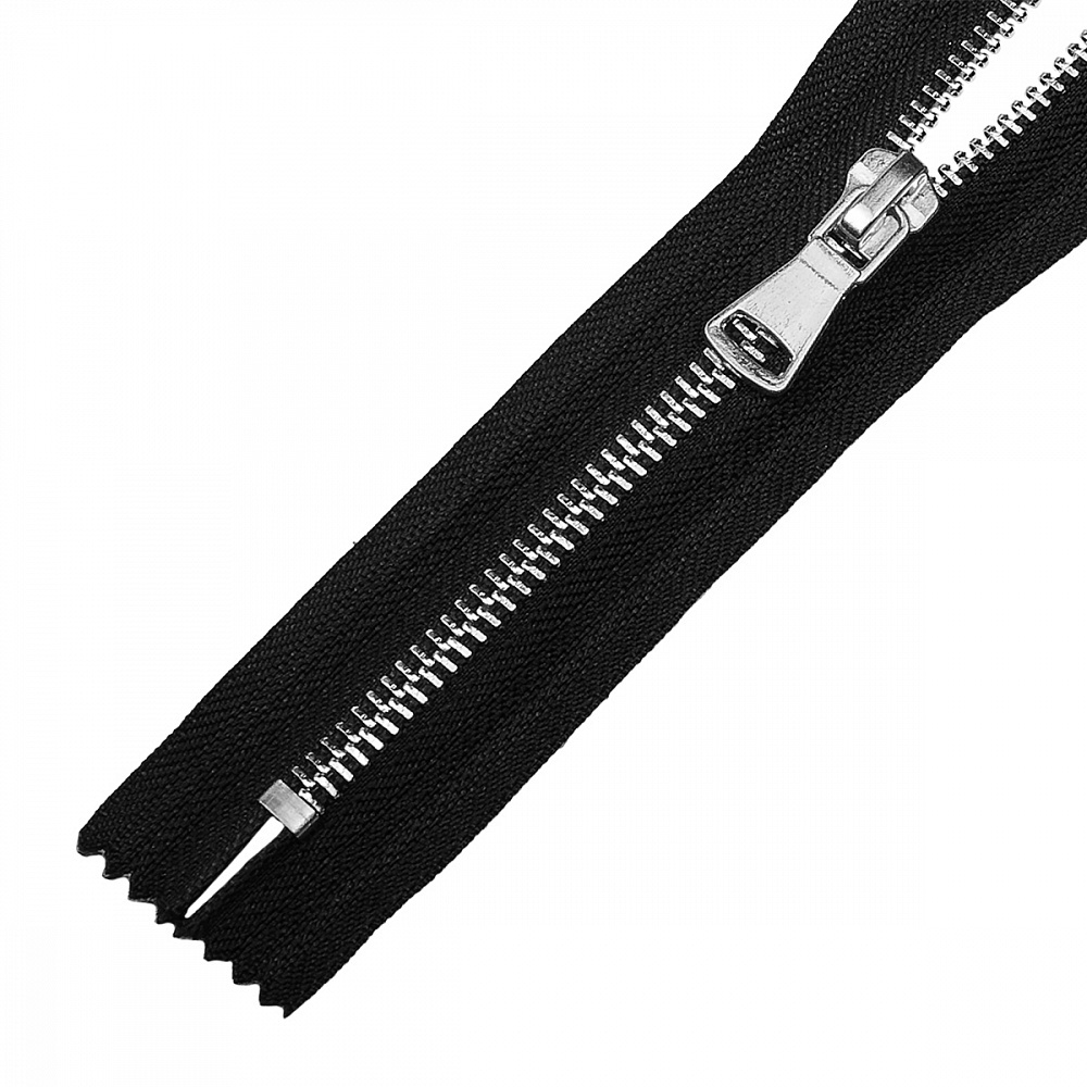 Молния металл Т5 (5 мм), 1 зам., н/раз., 18 см, никель шлиф.звено, цв.F322 черный уп.50 шт, Mzipp