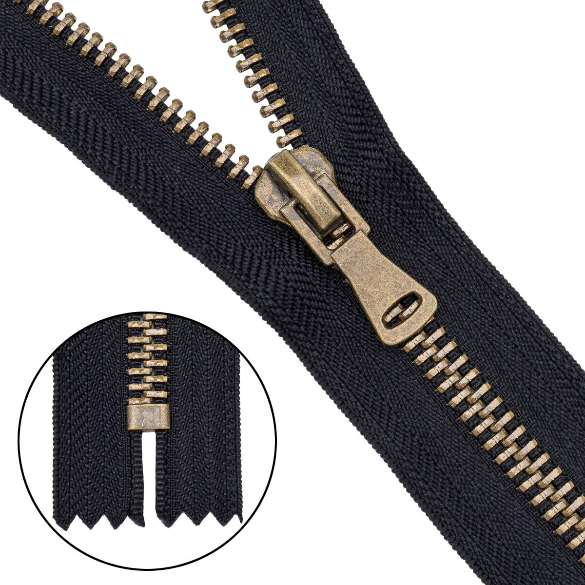 Молния металл Т8 (8 мм) 1 зам., н/раз., 18 см, антик, 580 черный, 10 шт, 16418-1
