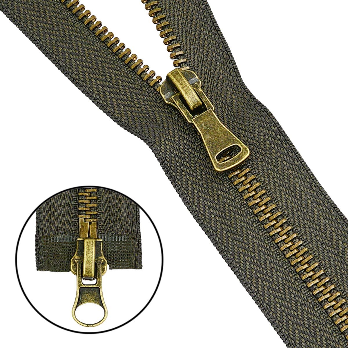 Молния металл Т5 (5 мм) 2 зам., разъем., 85 см, антик, 078 хаки, 5 шт