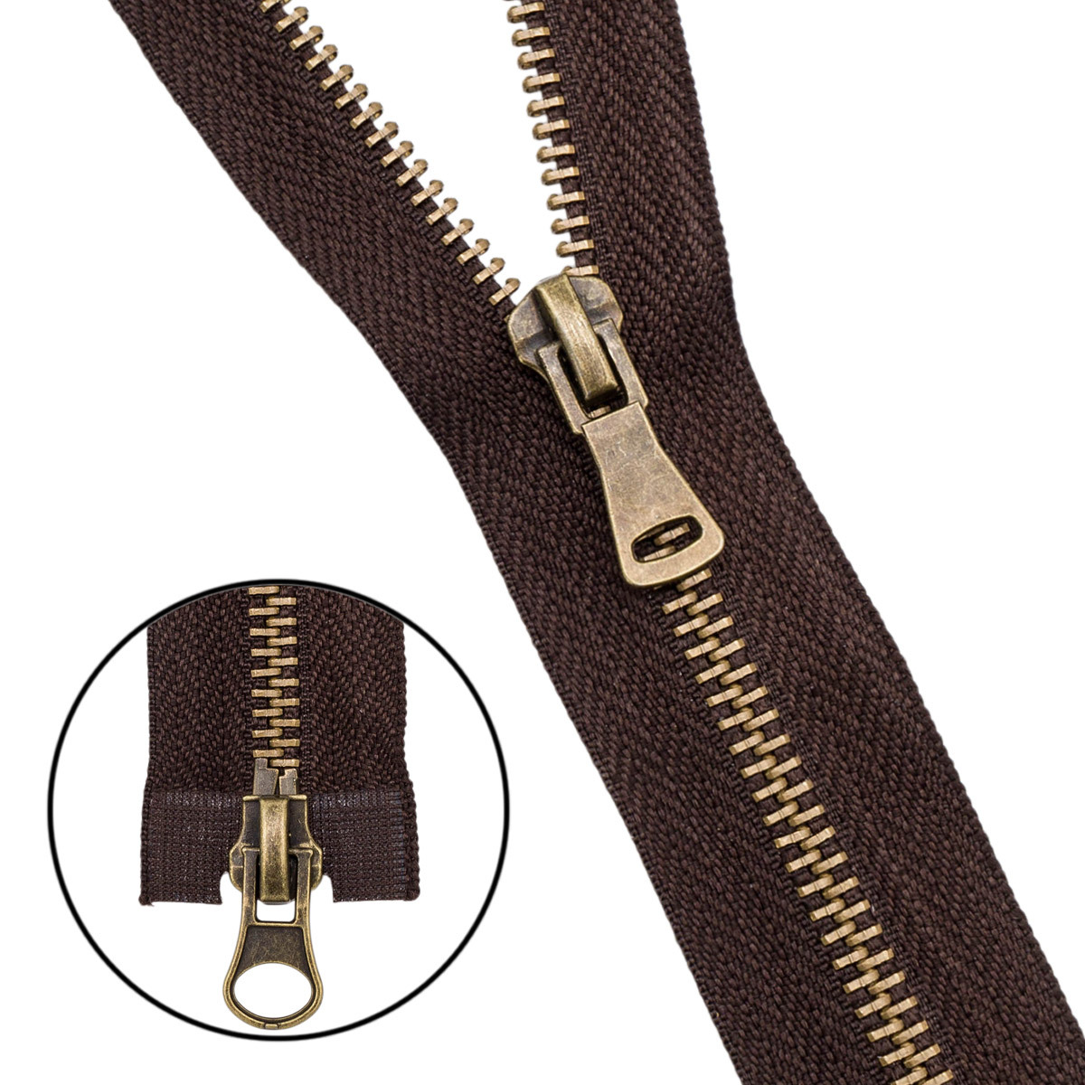Молния металл Т5 (5 мм) 2 зам., разъем., 85 см, антик, 141 темно-коричневый, 5 шт