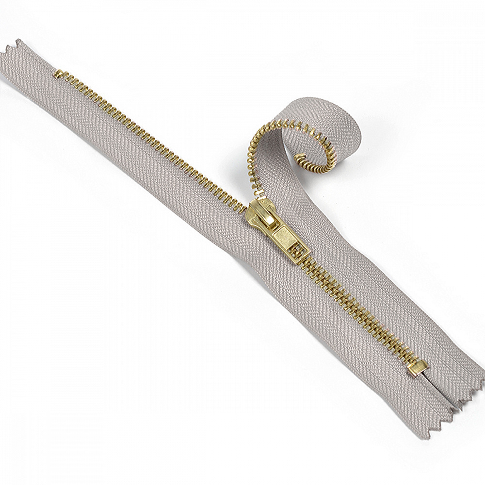 Молния металл джинсовая Т5 (5 мм) 1 зам., н/раз., золото, 18 см, цв.F310 св.серый уп.10 шт