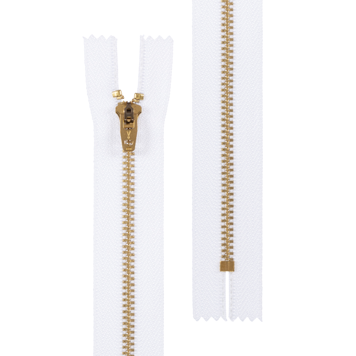 Молния металл джинсовая Т4 (4 мм) 1 зам., н/раз., 20 см, под латунь, 101 белый, Gamma JIN Y 4L