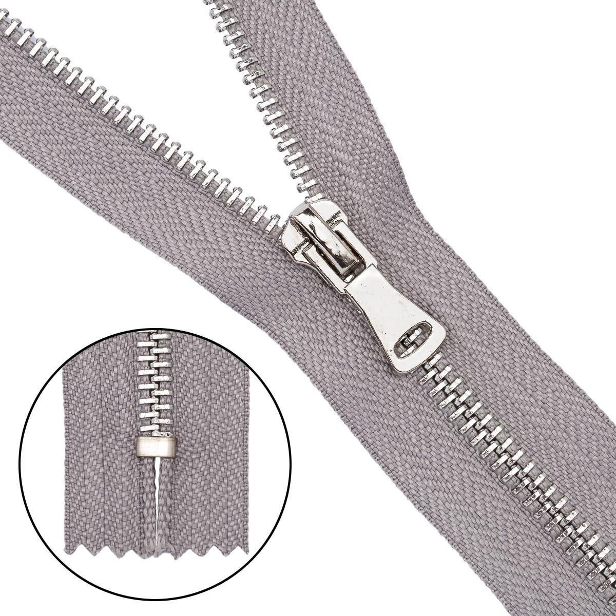 Молния металл Т5 (5 мм) 1 зам., н/раз., 18 см, никель, 340 св.серый, 10 шт