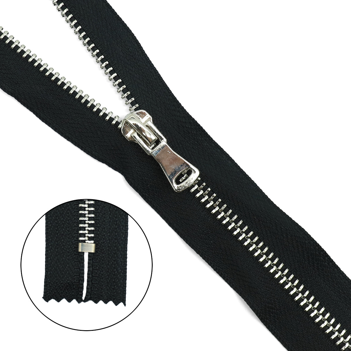 Молния металл Т5 (5 мм) 1 зам., н/раз., 20 см, никель, 580 черный, 10 шт