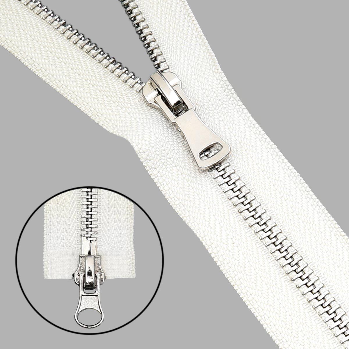 Молния металл Т5 (5 мм) 2 зам., разъем., 80 см, никель, 571 молочный, 5 шт, 21780-4