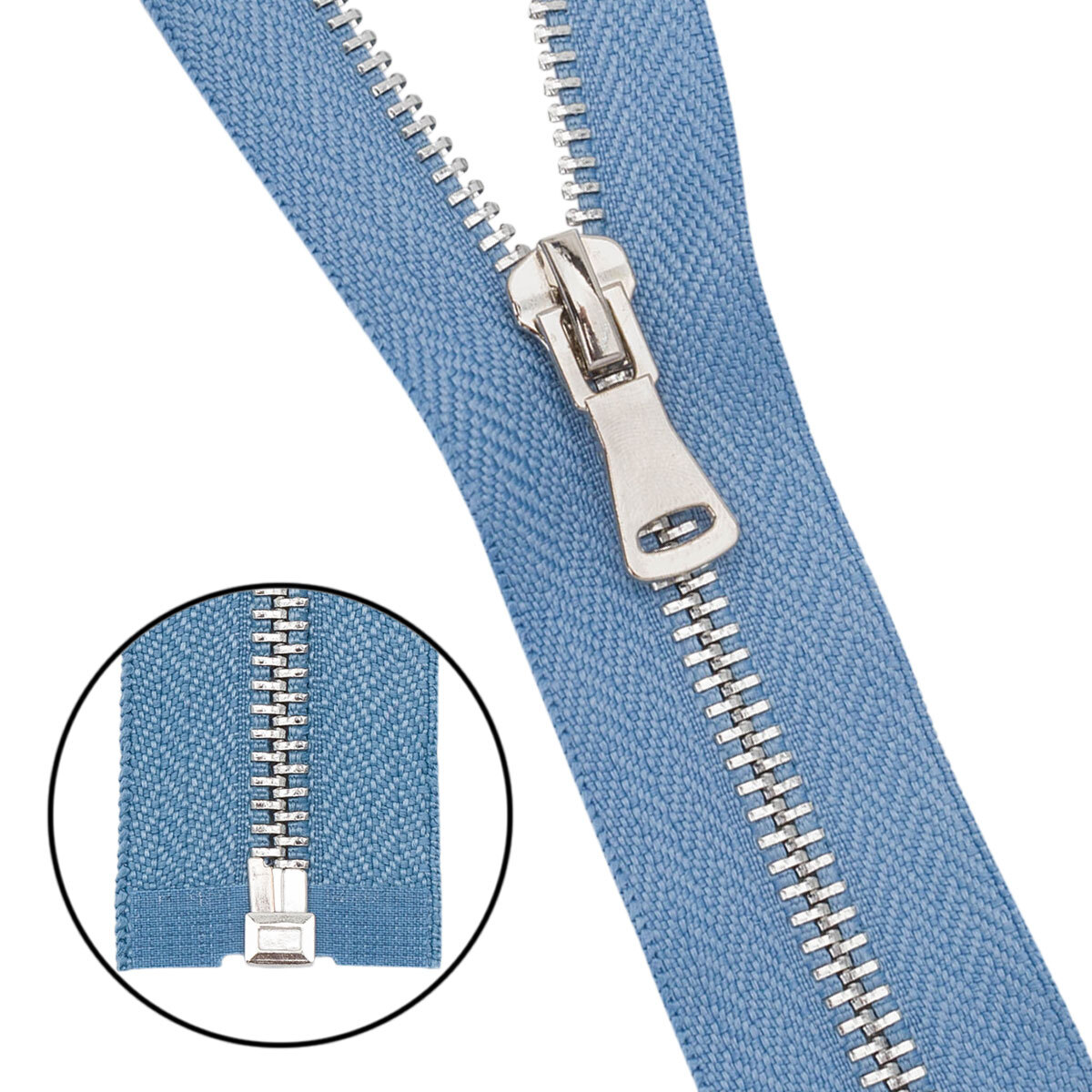 Молния металл Т5 (5 мм) 1 зам., разъем., 70 см, никель, 231 серо-голубой, 5 шт