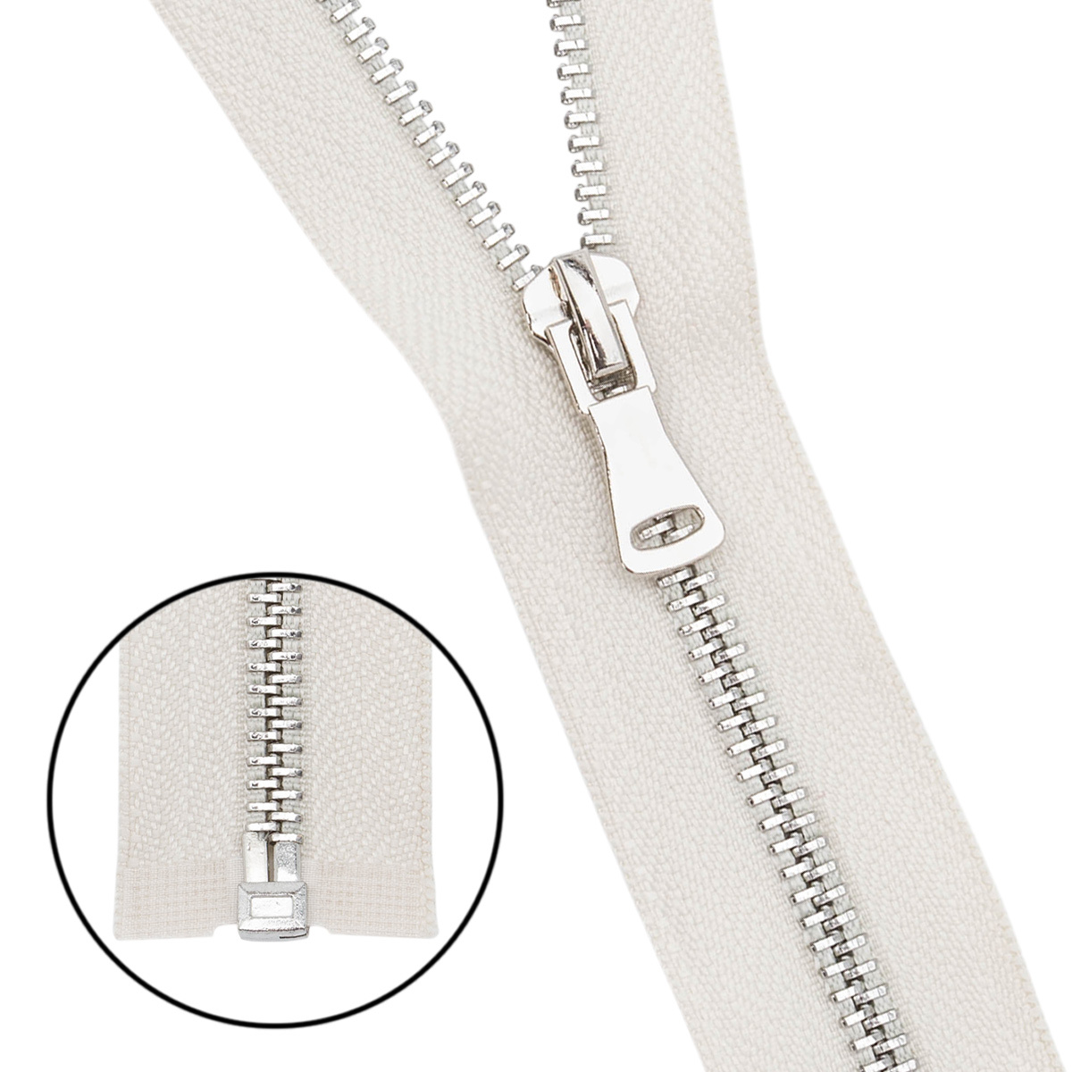 Молния металл Т5 (5 мм) 1 зам., разъем., 70 см, никель, 571 молочный, 5 шт