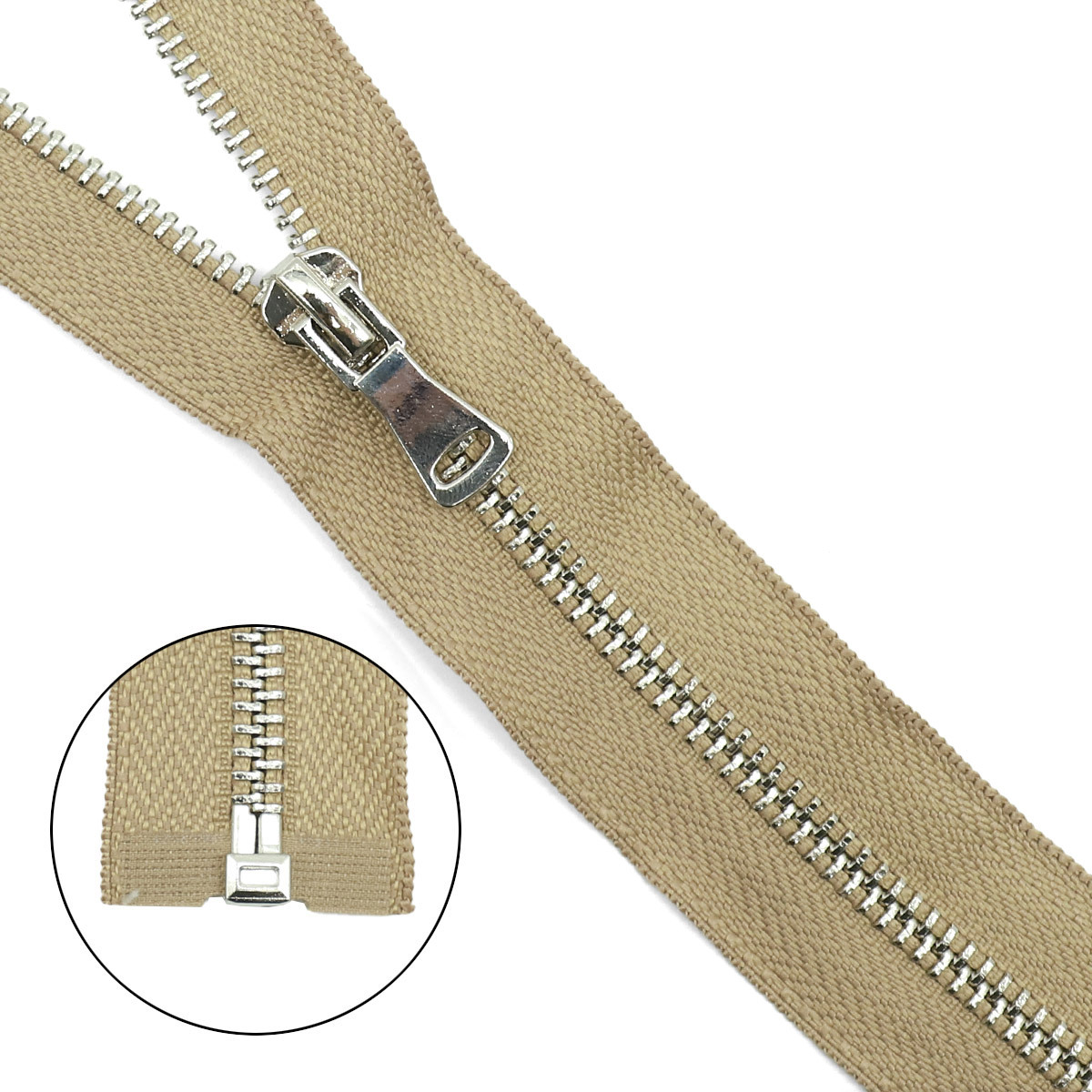 Молния металл Т5 (5 мм) 1 зам., разъем., 75 см, никель, 128 бежево-серый, 5 шт, 14875-3