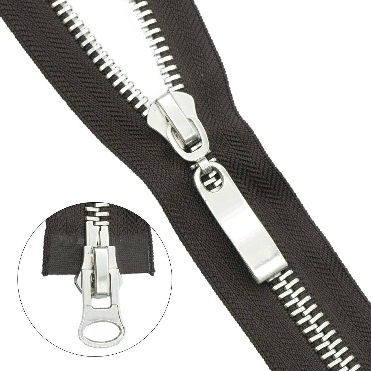 Молния металл Т8 (8 мм) 2 зам., разъем., 60 см, никель, 868 т.коричневый, 5 шт, 18560-2