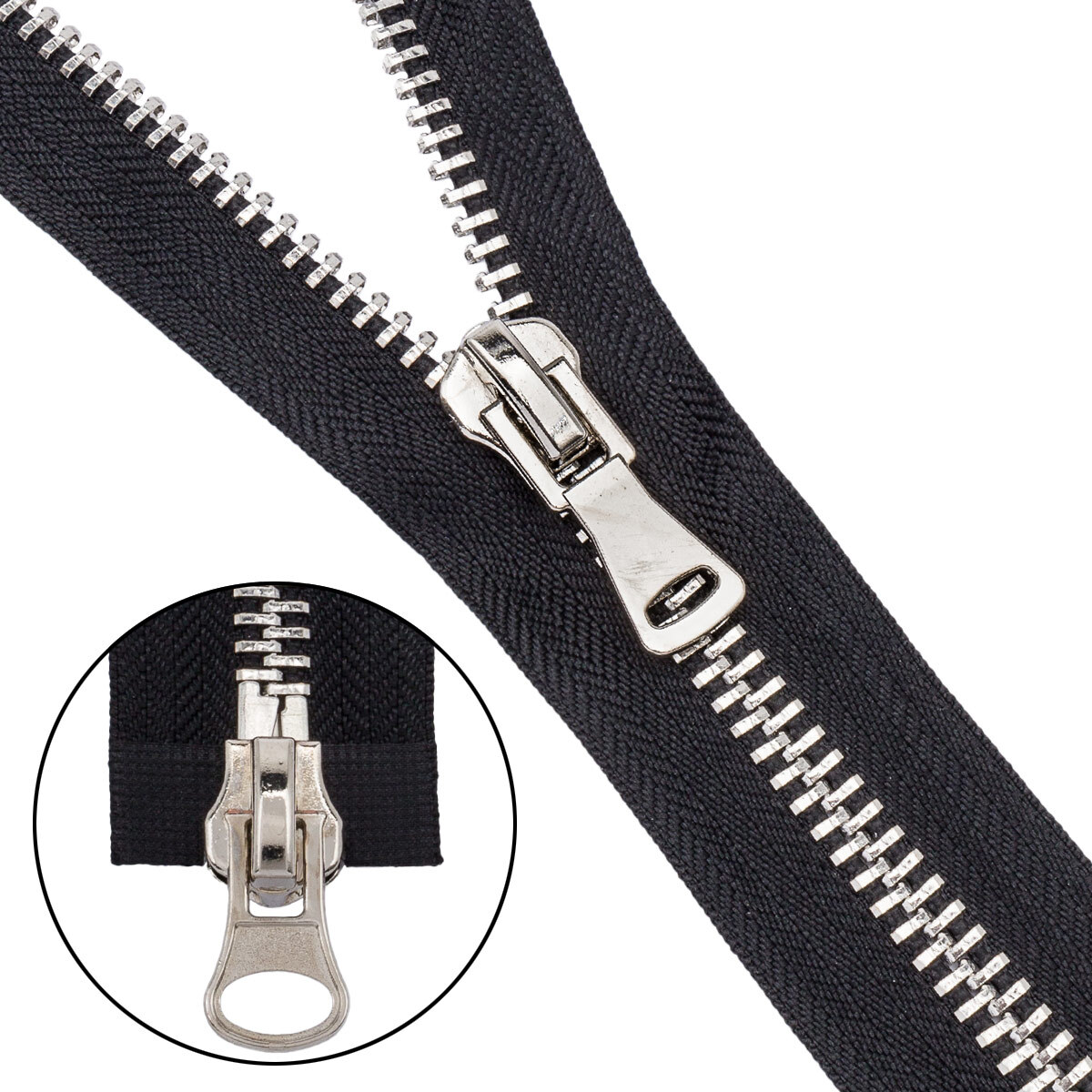 Молния металл Т8 (8 мм) 2 зам., разъем., 85 см, никель, 580 черный, 5 шт