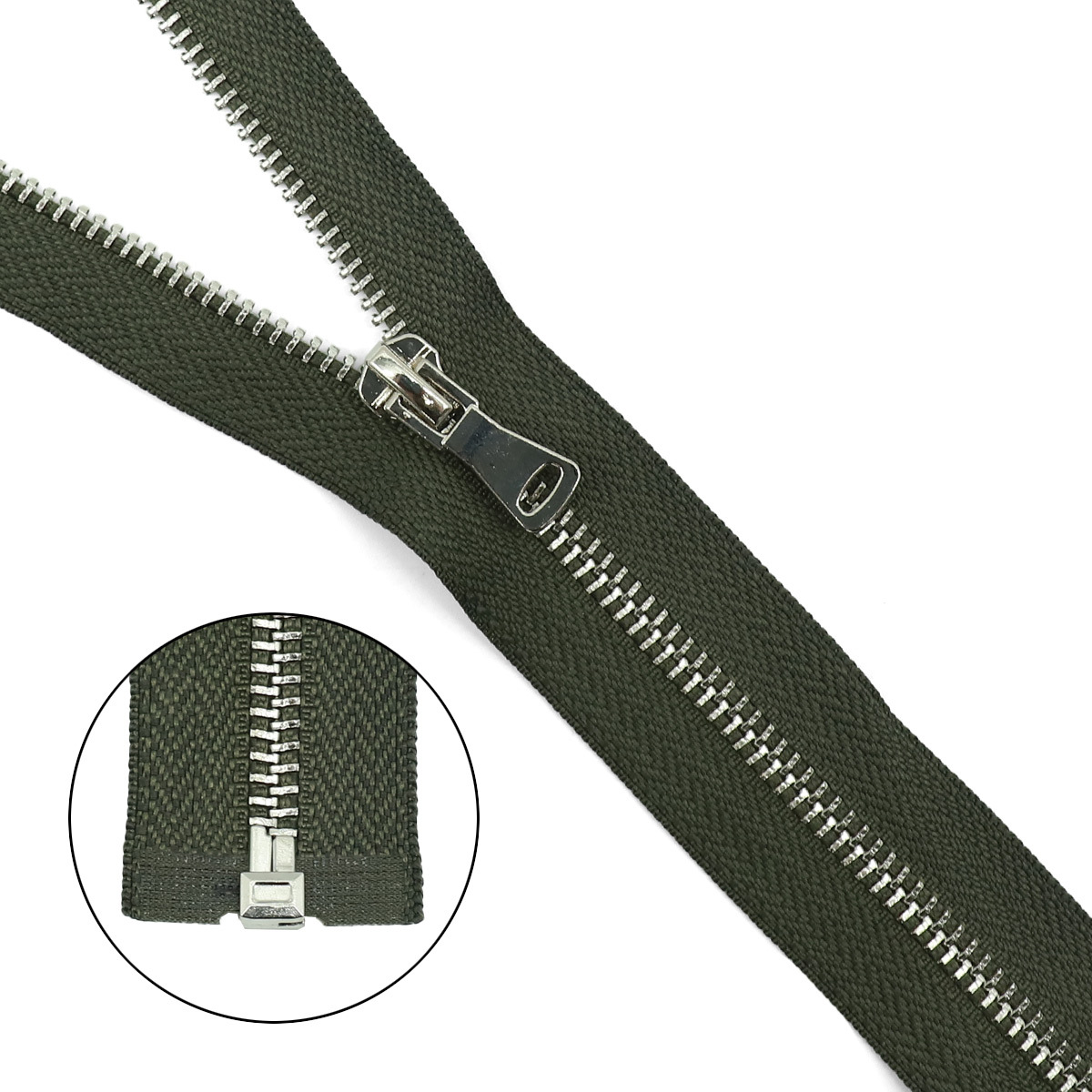 Молния металл Т5 (5 мм) 1 зам., разъем., 75 см, никель, 078 хаки, 5 шт, 14875-5