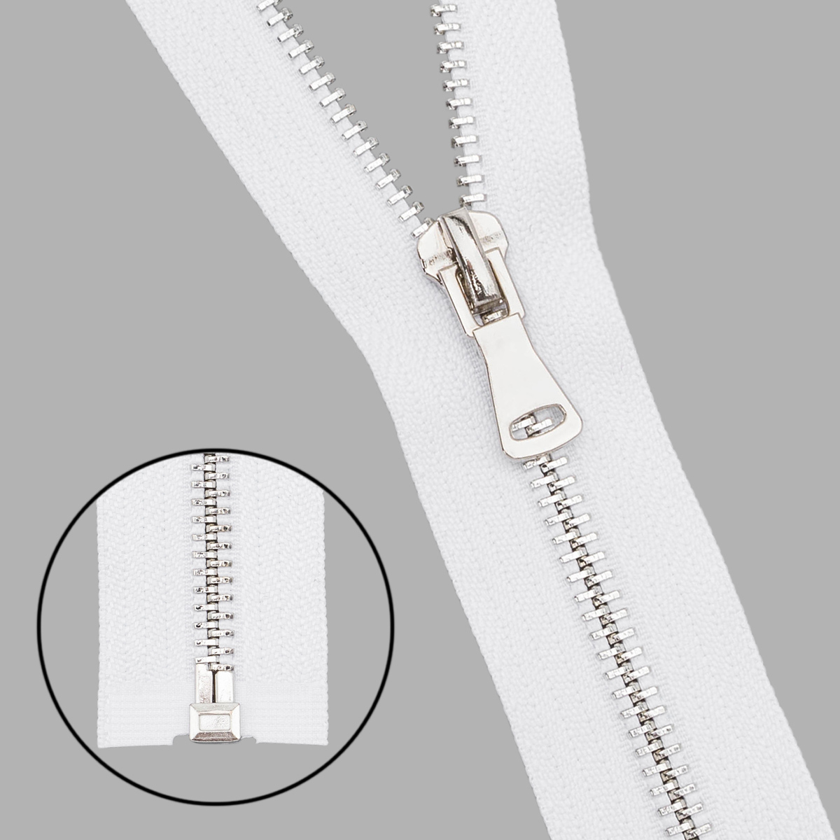 Молния металл Т5 (5 мм) 1 зам., разъем., 75 см, никель, 501 белый, 5 шт