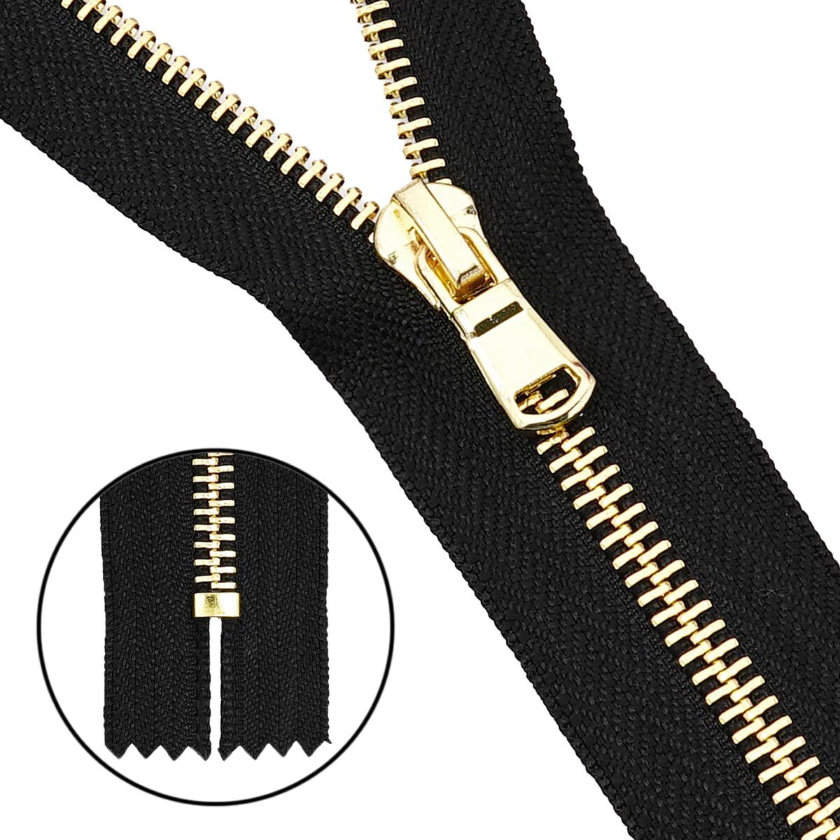 Молния металл Т5 (5 мм) 1 зам., н/раз., 18 см, золото, 580 черный, 10 шт, 7702731-1