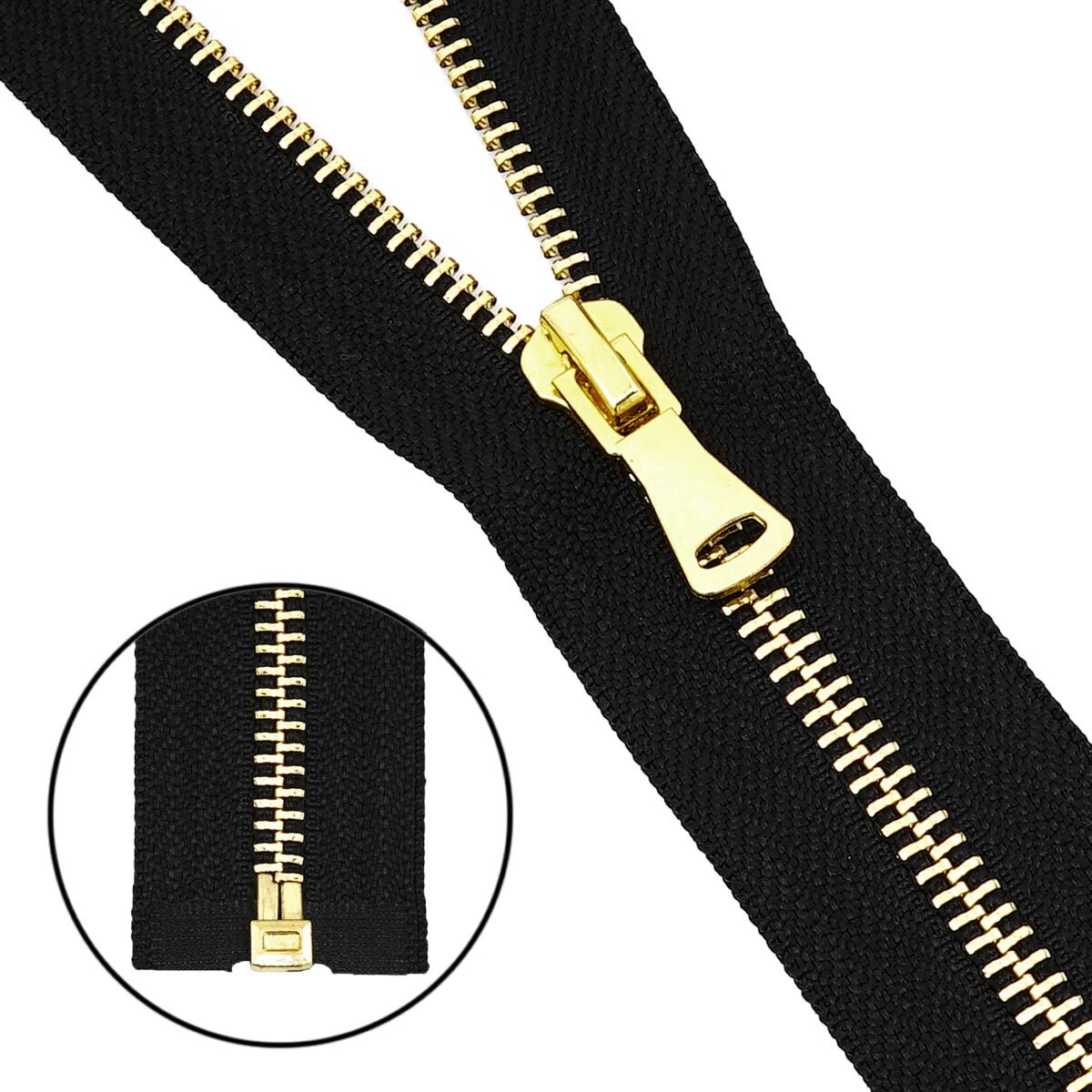 Молния металл Т5 (5 мм) 1 зам., разъем., 80 см, золото, 580 черный, 5 шт, 16280-1
