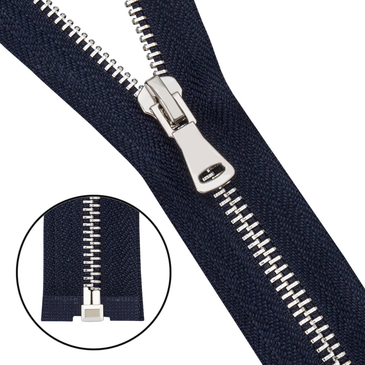 Молния металл Т5 (5 мм) 1 зам., разъем., 40 см, никель, 233 т.синий, 6535-0304, 5 шт