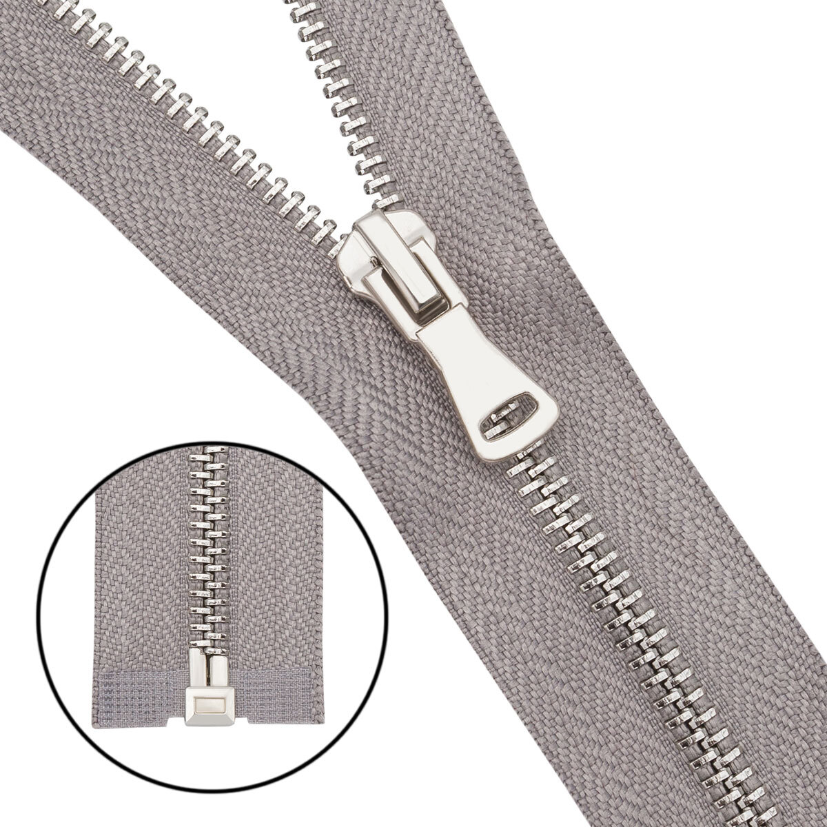 Молния металл Т5 (5 мм) 1 зам., разъем., 45 см, никель, 340 св.серый, 6535-0305, 5 шт