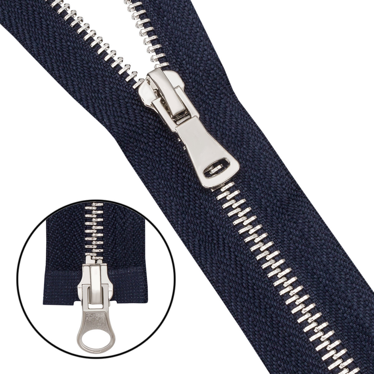 Молния металл Т5 (5 мм) 2 зам., разъем., 65 см, никель, 233 т.синий, 6535-0310, 5 шт