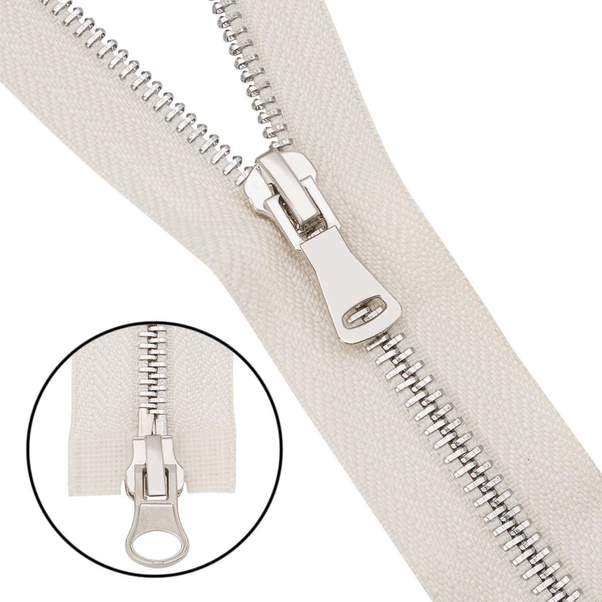 Молния металл Т5 (5 мм) 2 зам., разъем., 65 см, никель, 571 молочный, 6535-0310, 5 шт