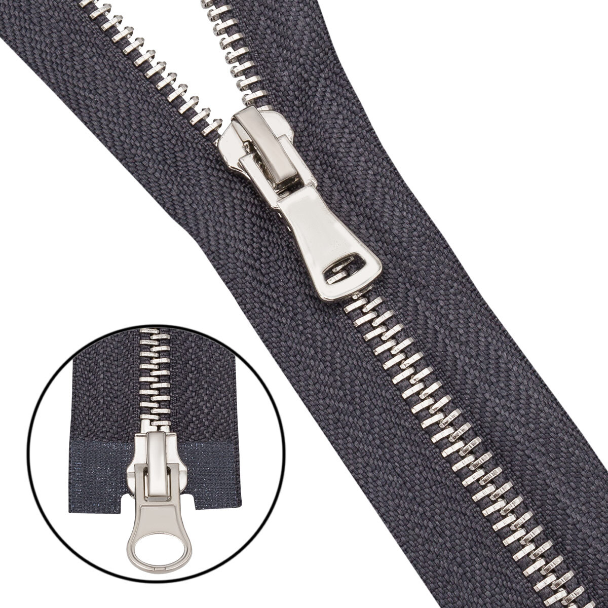 Молния металл Т5 (5 мм) 2 зам., разъем., 70 см, никель, 301 т.серый, 6535-0311, 5 шт