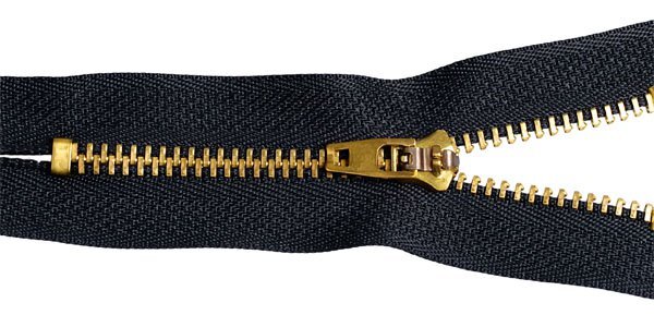 Молния металл джинсовая Т4 (4 мм) 1 зам., н/раз., 10 см, золото, замок М-4002, цв.F322 черный, 10 шт, Mzip