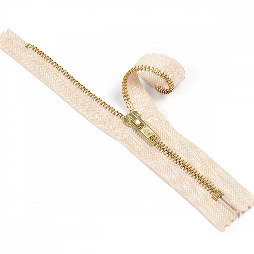 Молния металл джинсовая Т5 (5 мм) 1 зам., н/раз., 18 см, золото, цв.F291 бежевый, Mzipp, 50 шт