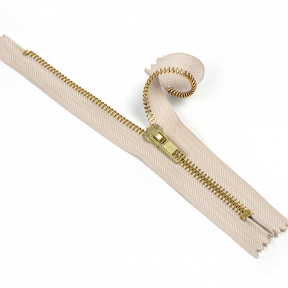 Молния металл джинсовая Т5 (5 мм) 1 зам., н/раз., 18 см, золото, цв.F307 натуральный, Mzipp, 50 шт