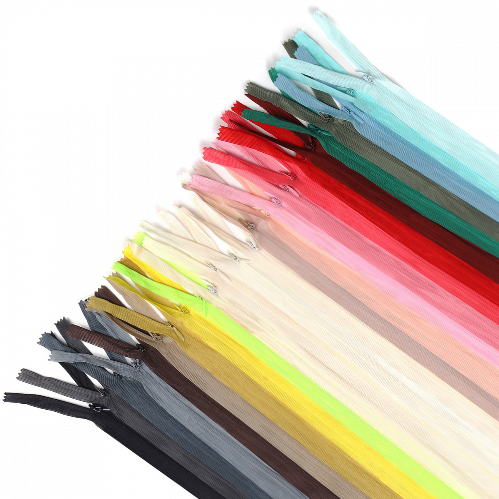 Молния потайная (скрытая) Т3 (3 мм) 1 зам., н/раз., 70 см, ассорти № 10 уп.25цв х 2 шт, Mzip