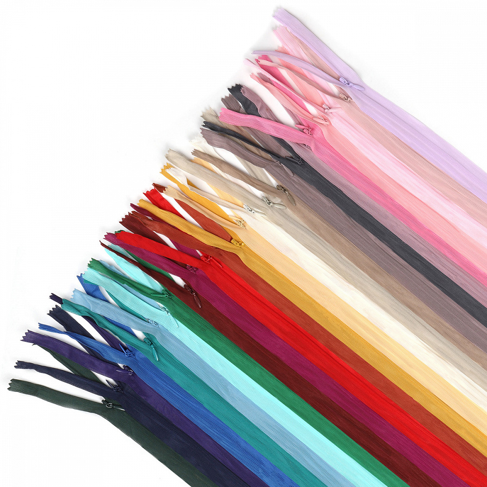 Молния потайная (скрытая) Т3 (3 мм) 1 зам., н/раз., 80 см, ассорти № 11 уп.25цв х 2 шт, Mzip