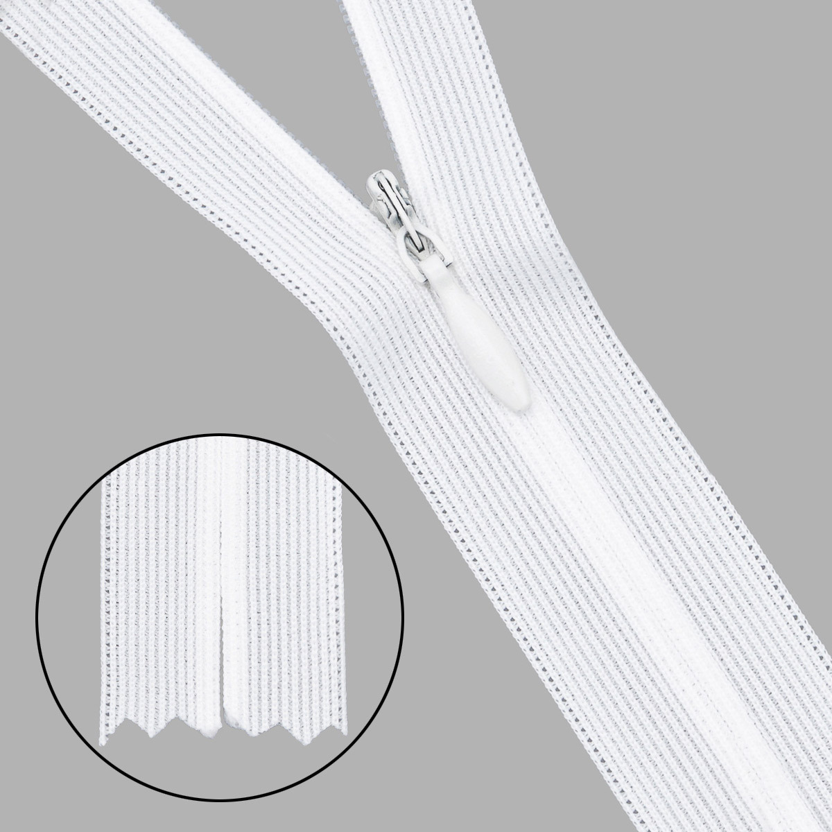 Молния потайная (скрытая) Т3 (3 мм) 1 зам., н/раз., 18 см, нейлон, 501 белый, 101 белый, 10 шт