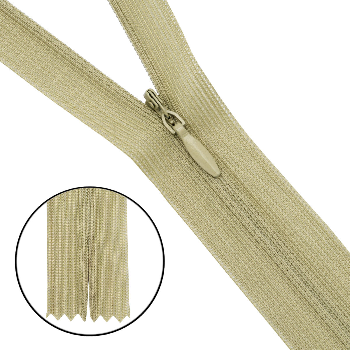 Молния потайная (скрытая) Т3 (3 мм) 1 зам., н/раз., 20 см, нейлон, F245 бежевый, 10 шт
