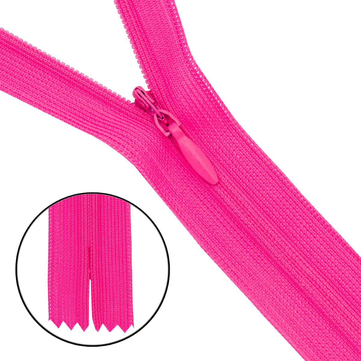 Молния потайная (скрытая) Т3 (3 мм) 1 зам., н/раз., 20 см, нейлон, F337 ярк.розовый неон, 10 шт