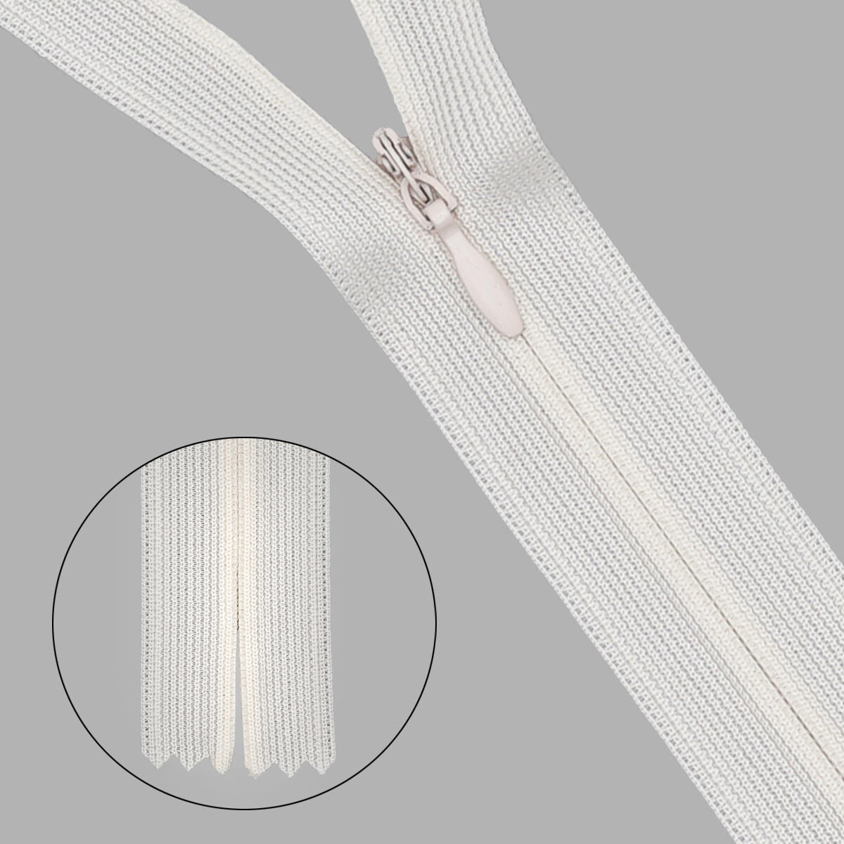 Молния витая потайная имеет особое строение. Её звенья расположены на изнаночной стороне застежки и прикрыты текстильной лентой. С лицевой стороны находится только бегунок, поэтому такая молния на готовом изделии почти незаметна. Потайные молнии используют при изготовлении одежды для взрослых и детей: юбок, блузок, платьев, трикотажных изделий, а также постельного белья, предметов домашнего обихода, разнообразных аксессуаров. Молния выполнена из материалов высокого качества. Текстильная лента из полиэстера не линяет при стирке и химической чистке. Звенья изготовлены нейлона, размер 3 мм, молния плотно смыкается, имеет небольшой вес, подходит для легких тканей. Изящный металлический слайдер свободно скользит по тесьме.
