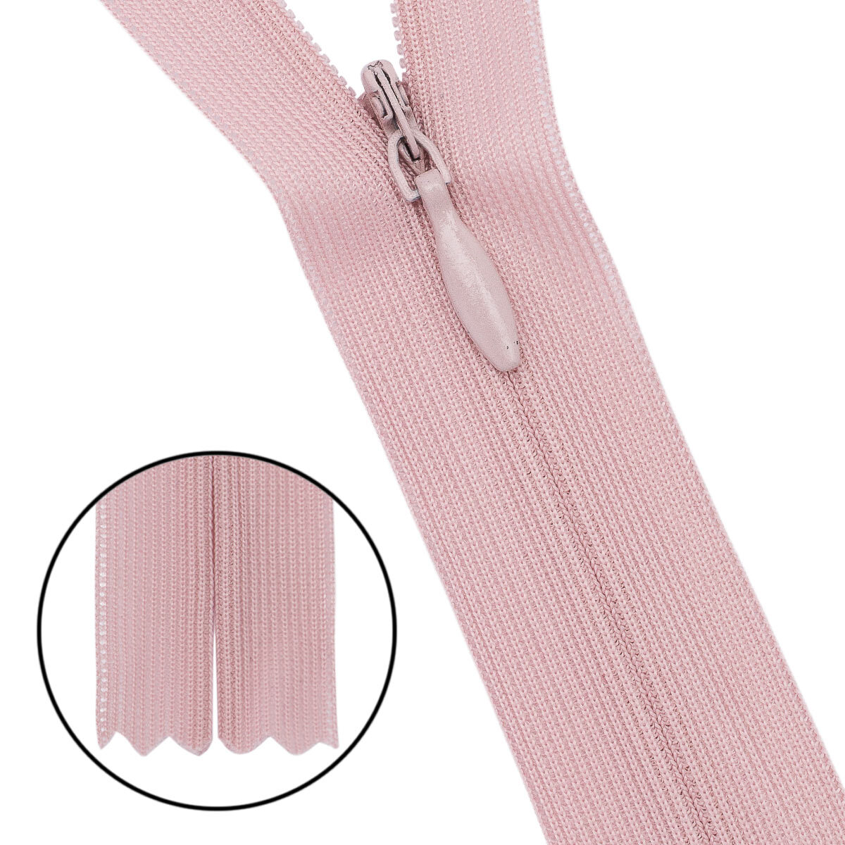Молния потайная (скрытая) Т3 (3 мм) 1 зам., н/раз., 50 см, нейлон, 344 бежево-розовый, 10 шт