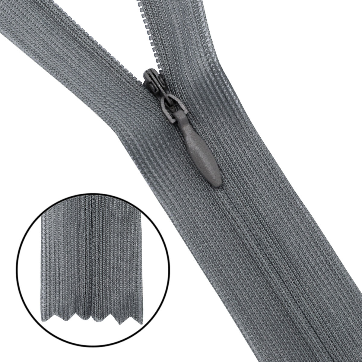Молния потайная (скрытая) Т3 (3 мм) 1 зам., н/раз., 50 см, нейлон, 392 т.серый, 10 шт